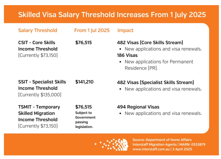 核心技能收入门槛(CSIT):从 73,150 澳元增加到76,515 澳元。